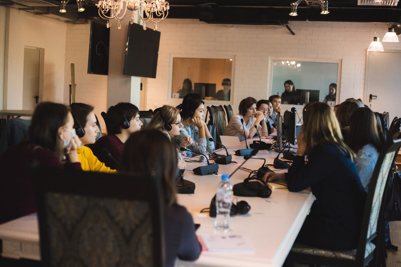 Примечательно, что рассказ Дианы с английского для магистрантов первого года обучения переводили их коллеги по профессии, которые уже завершают подготовку синхронистов.