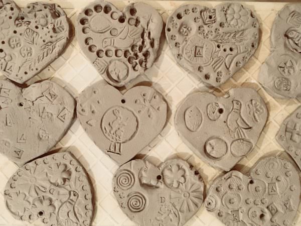 Вооружившись штампиками, детвора погрузилась в создание поделок. Несмотря на то что задача была поставлена простая — сделать декоративное сердечко, — организаторы не успевали подавать новые пласты глины. Идеи у ребят появлялись на ходу. Им хотелось испытать на практике каждый штампик и увидеть, как рождается новый рисунок после его использования.