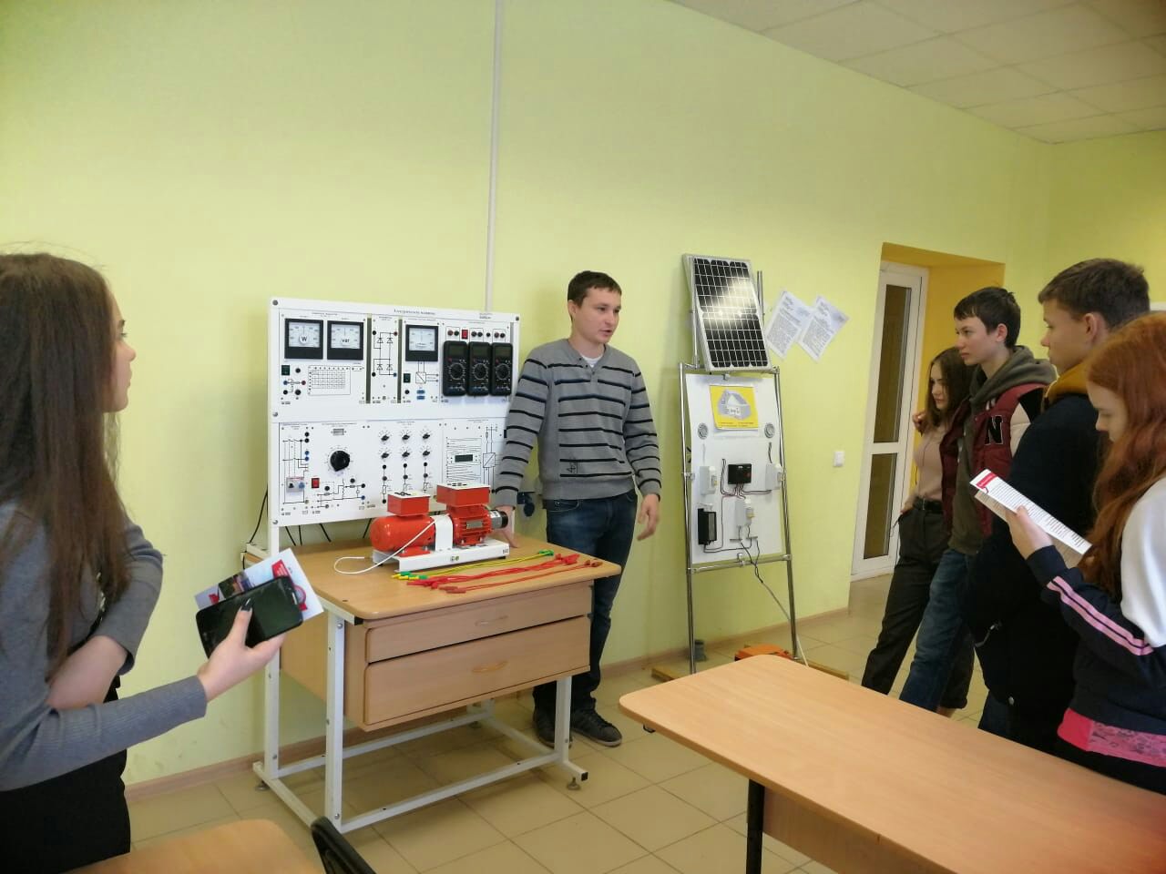 В ходе демонстрационных занятий школьники собирали электрические схемы, проводили опыты над асинхронным электродвигателем, познакомились с альтернативной энергетикой и прошли краткий курс техники безопасности.