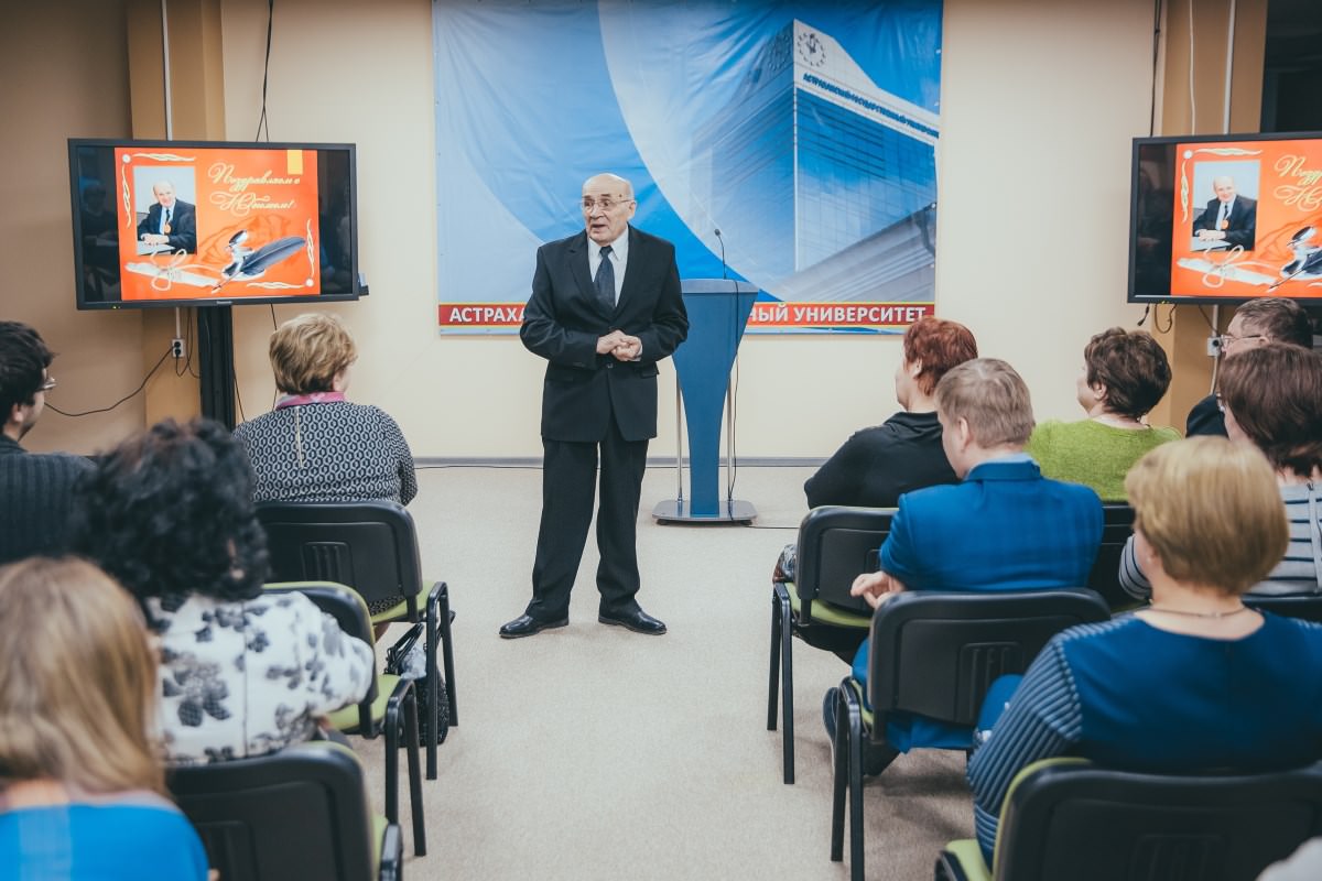 К тому же юбиляр в своё время принимал активное участие в работе приёмной комиссии и даже возглавлял профсоюз вуза. Поздравить его пришла председатель Астраханской областной организации профсоюза работников народного образования и науки Татьяна Бугреева.