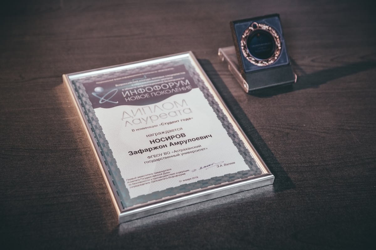 Студенты кафедры информационной безопасности Астраханского госуниверситета четвёртый год подряд становятся лауреатами Всероссийского конкурса молодых специалистов и образовательных центров в области информационной безопасности «Инфофорум. Новое поколение» в номинации «Студент года». В этом году в числе лучших магистрант Астраханского госуниверситета Зафаржон Носиров.