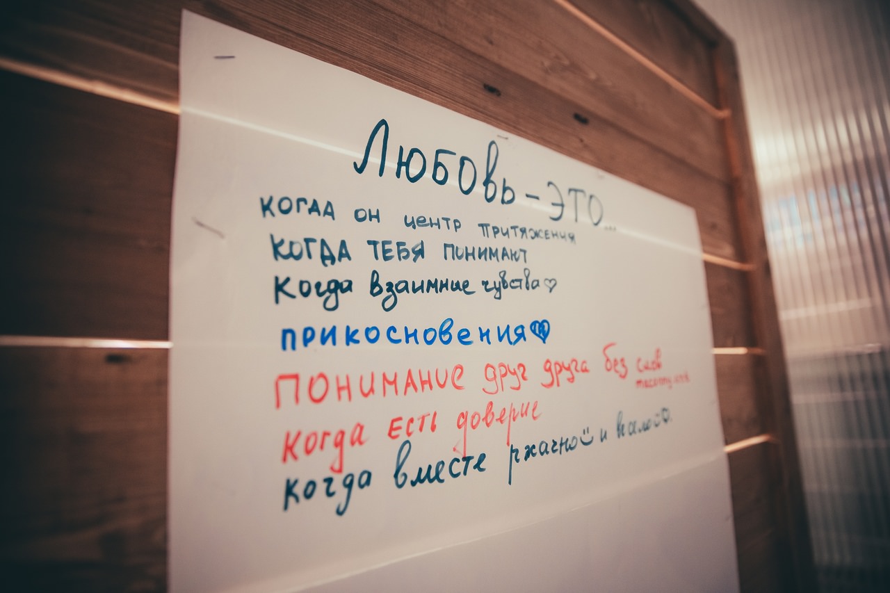 Кроме того, на специальном стенде можно было оставить запись на тему «Любовь — это когда...». Поделиться своими мыслями и чувствами рискнули не только студенты, но и преподаватели университета. А профком награждал каждого автора маленьким тематическим подарком — жевательной резинкой «Love is...».