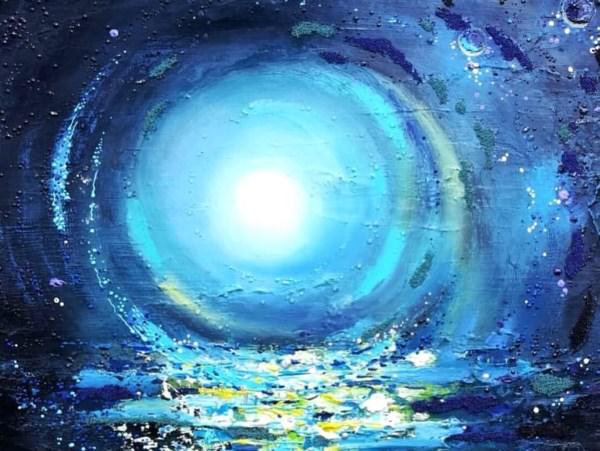 Для создания полотна «Бесконечность» используется акрил, поталь, золотая пыль.