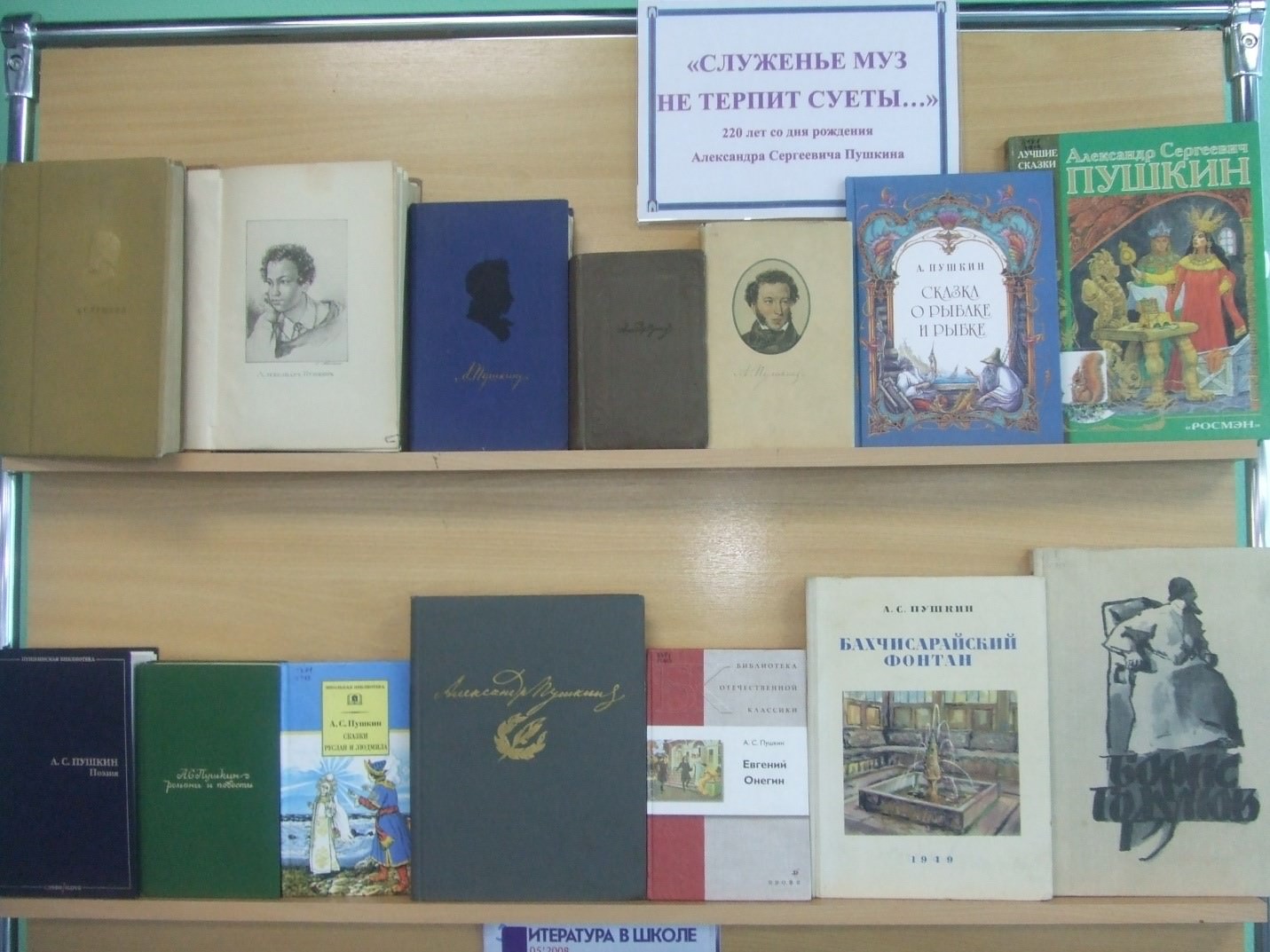 В читальном зале научной библиотеки Астраханского госуниверситета (пристрой к учебному корпусу № 1, 3 этаж) оформлена книжная выставка «Служенье муз не терпит суеты...». На экспозиции представлены книги, которые познакомят читателей с прозой, драматическими произведениями, стихами Пушкина, с литературой о его жизни и творчестве.