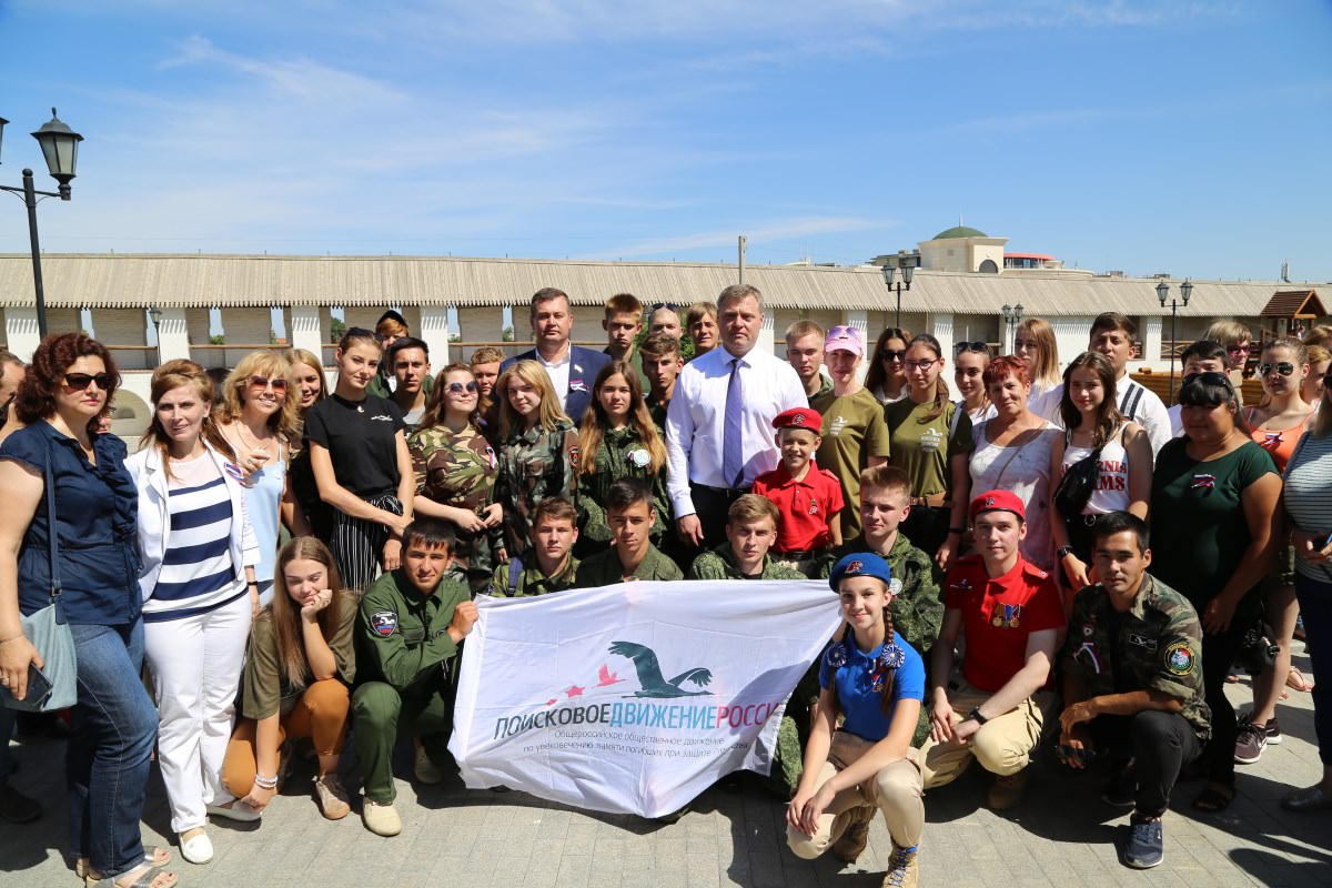 Представители АГУ, в том числе участники поискового движения, наравне с другими горожанами были вовлечены в передачу государственного флага Российской Федерации по цепочке из рук в руки от Пречистенских ворот кремля до площадки перед Гауптвахтой.