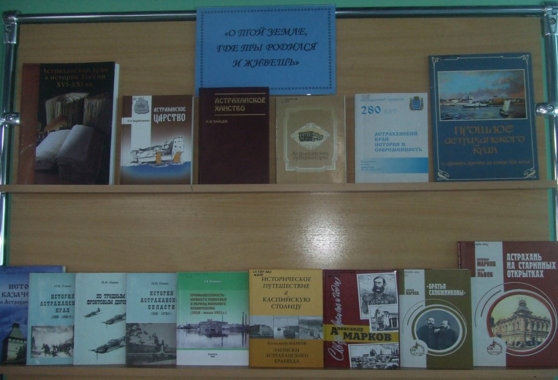 В читальном зале научной библиотеки в главном корпусе АГУ оформлена книжная выставка «О той земле, где ты родился и живёшь», посвящённая истории Астрахани.