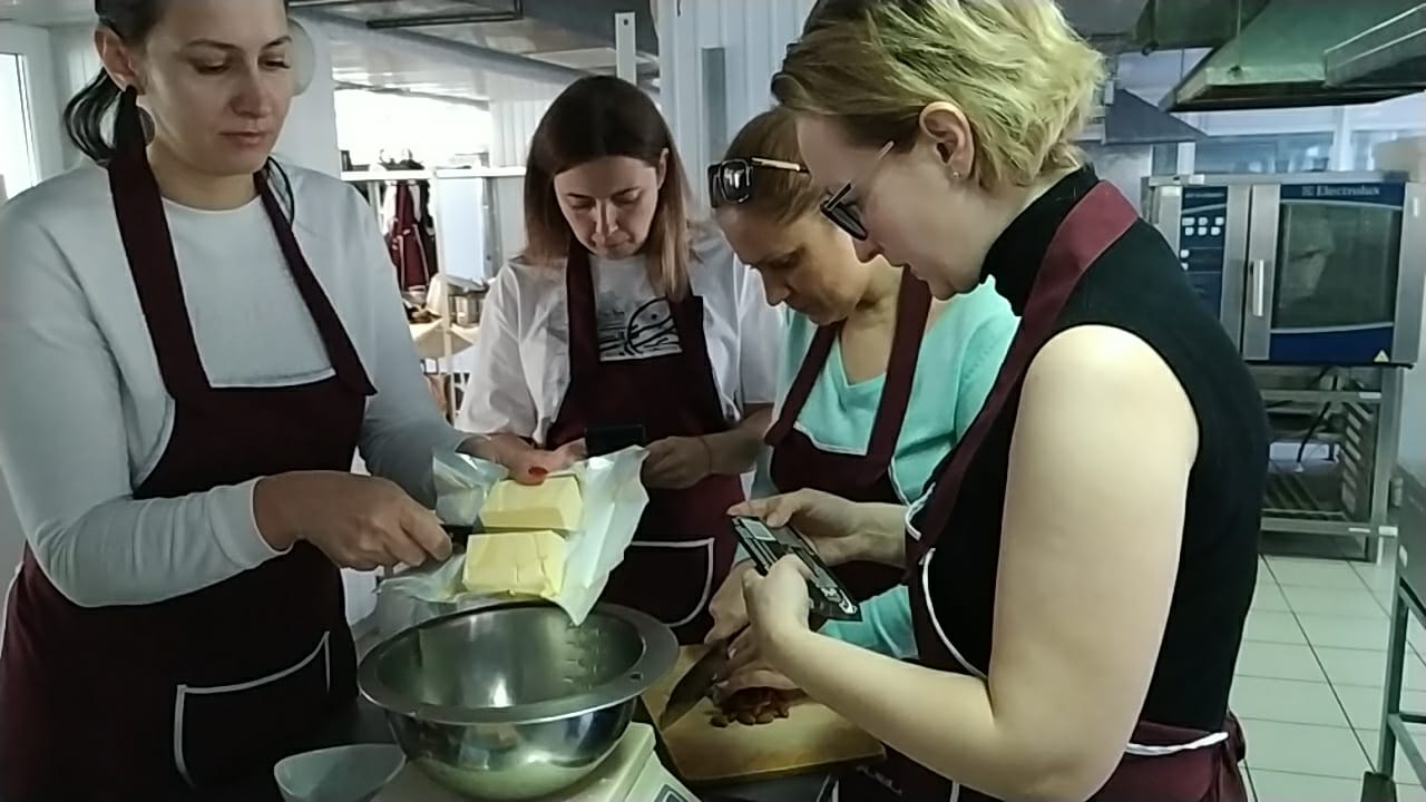 Собравшиеся вдохновенно создавали поистине весенний десерт — шоколадное пирожное «Брауни», украшенное клубникой. По словам директора учебного центра ресторанного сервиса и гостеприимства, шеф-повара Владимира Палаткина, выбор этого кондитерского изделия был обусловлен тем, что процесс его приготовления требует именно совместной работы. Мусс-крем «Патисьер», медовый ганаш, бисквит с пеканом, конечно, удались не сразу, но упорство и терпение участниц в итоге позволили получить желаемый результат! Немаловажной составляющей встречи стало и общение.