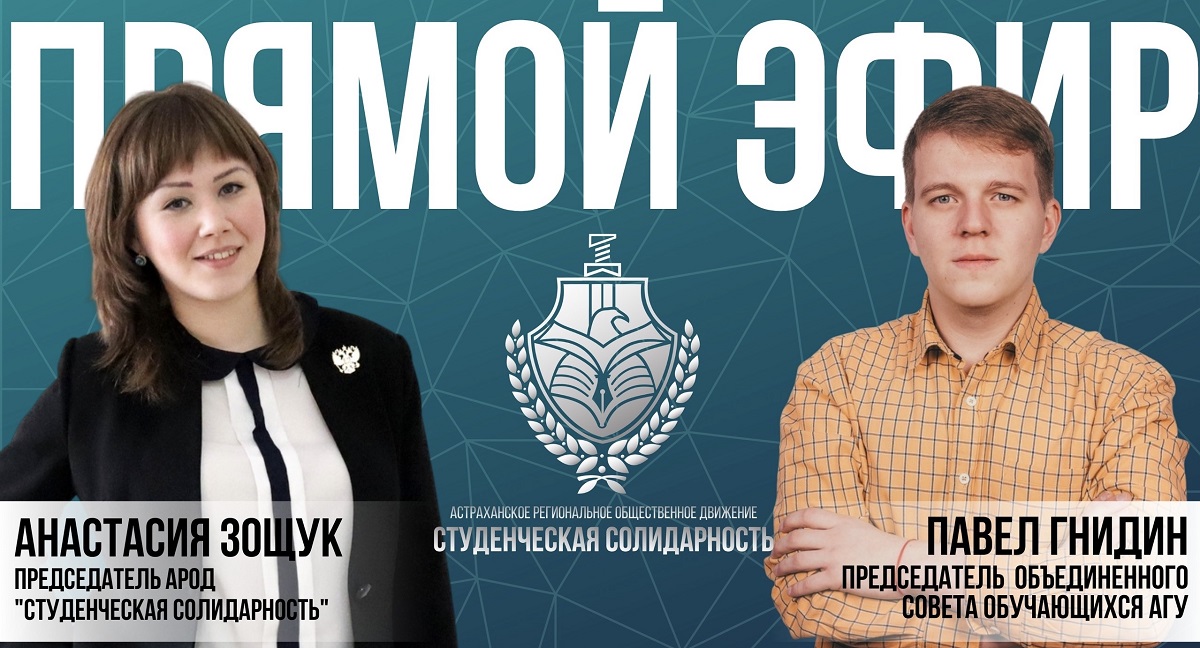 Председатель объединённого совета обучающихся АГУ Павел Гнидин стал приглашённым гостем прямого эфира Астраханского регионального общественного движения «Студенческая солидарность» и побеседовал с его председателем Анастасией Зощук.