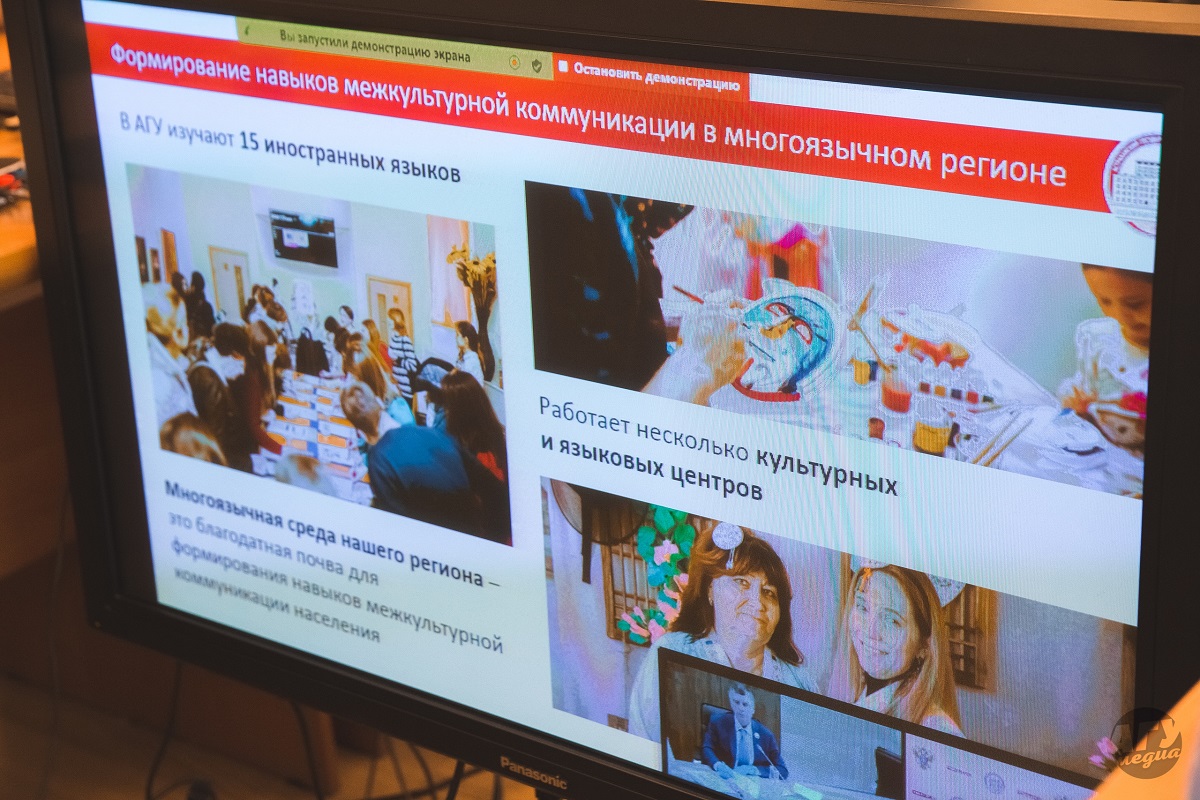 Особое внимание в своём докладе Константин Маркелов уделил онлайн-образованию как инструменту стабильного развития международной образовательной среды, в особенности в сложившихся условиях, вызванных пандемией и режимом самоизоляции. Так, ректор рассказал о реализующемся на базе вуза проекте «Международный онлайн против COVID-19», в рамках которого лекторы из зарубежных университетов-партнёров выступают перед студентами АГУ, а специалисты АГУ — перед иностранными студентами.